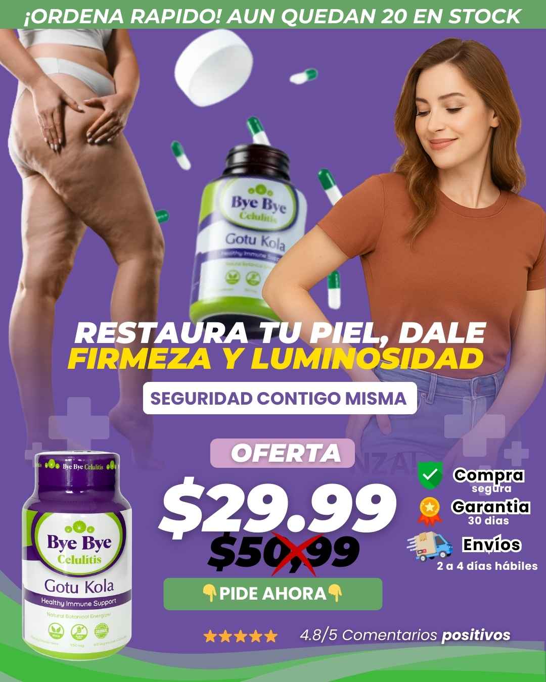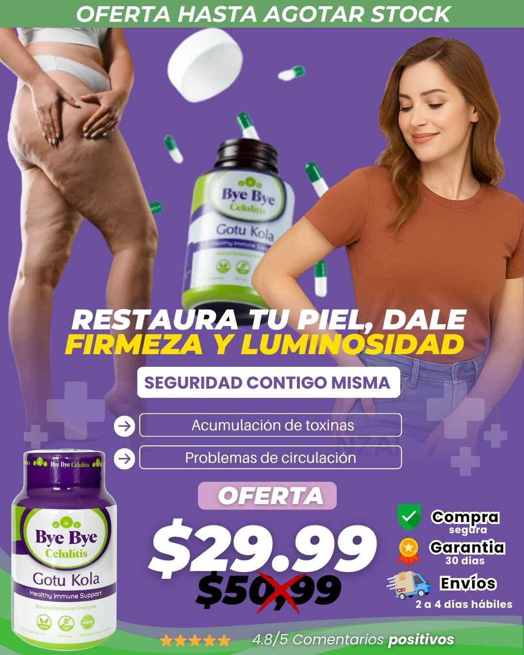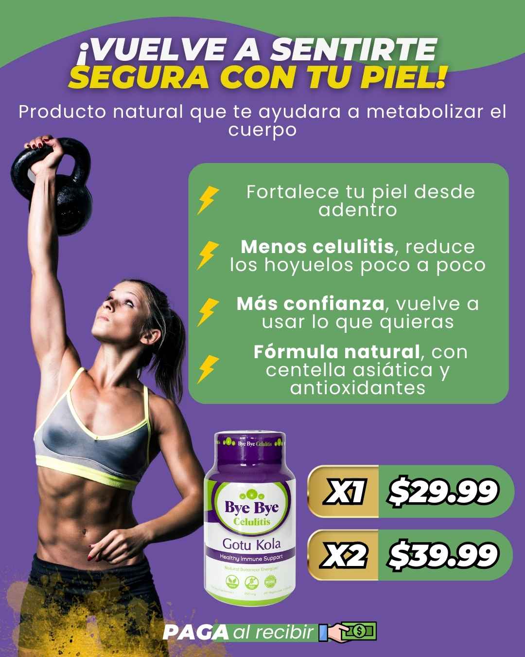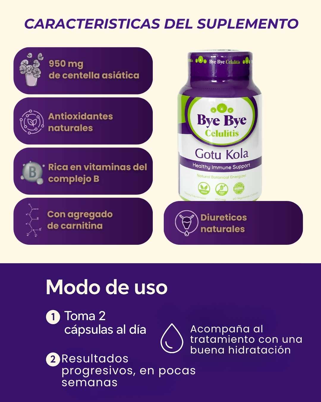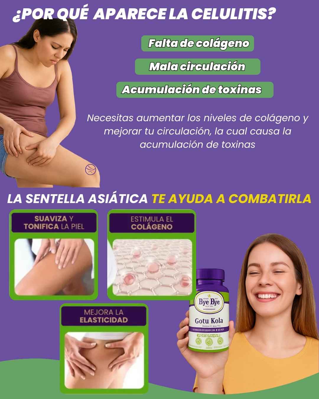 ✅ 1 frasco de Bye Bye Celulitis – Gotu Kola (950 mg, 60 cápsulas vegetarianas)