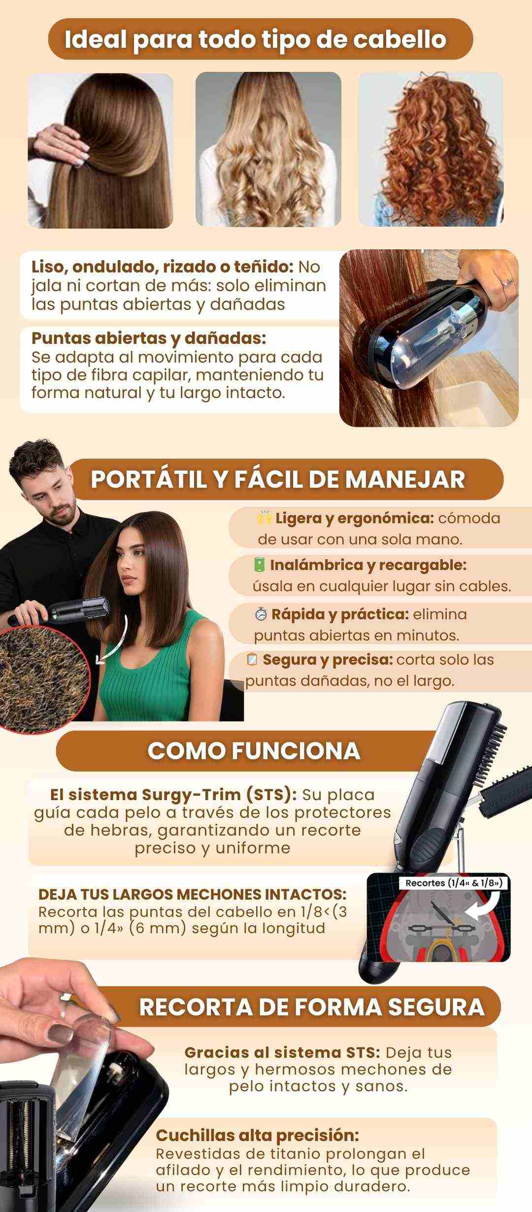 No 😊. Su diseño elimina solo las puntas abiertas o dañadas, manteniendo intacto el largo de tu cabello.