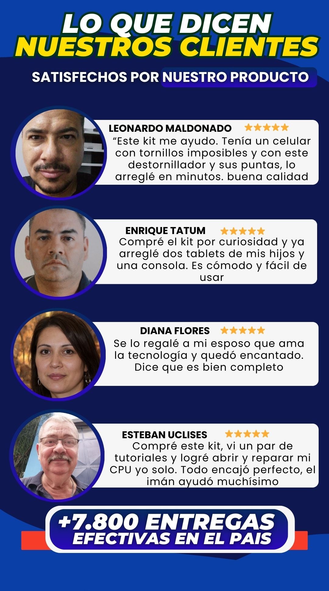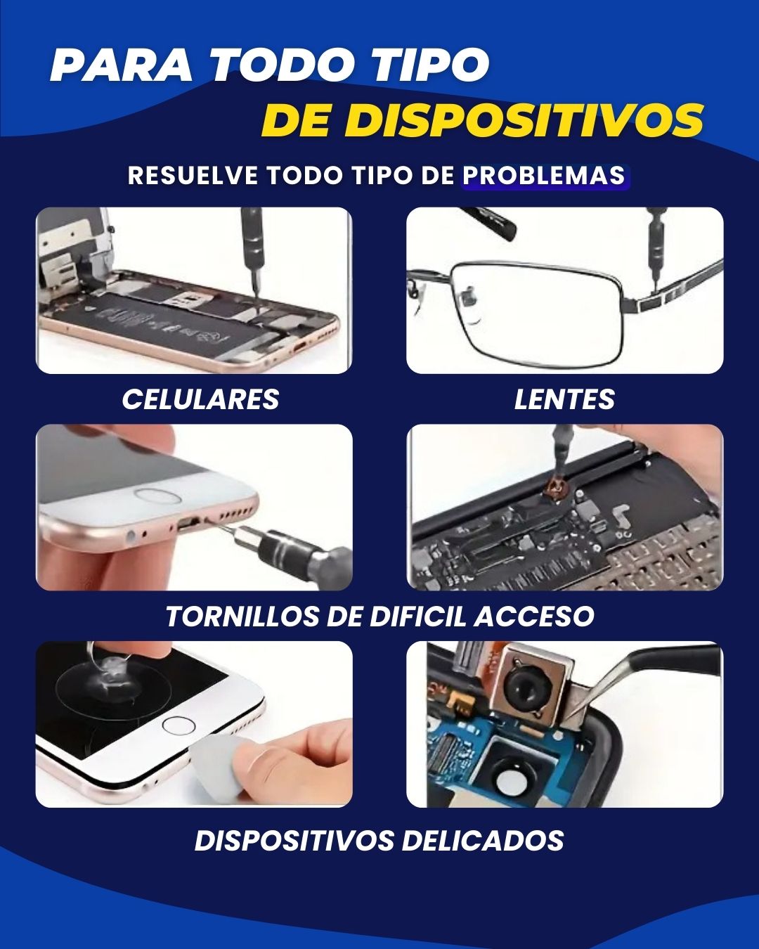 ¡Sí! Viene con todo lo necesario para hacerlo de forma segura: puntas precisas, ventosa, palancas y extensores. Incluso sin experiencia, puedes aprender fácilmente con tutoriales básicos.