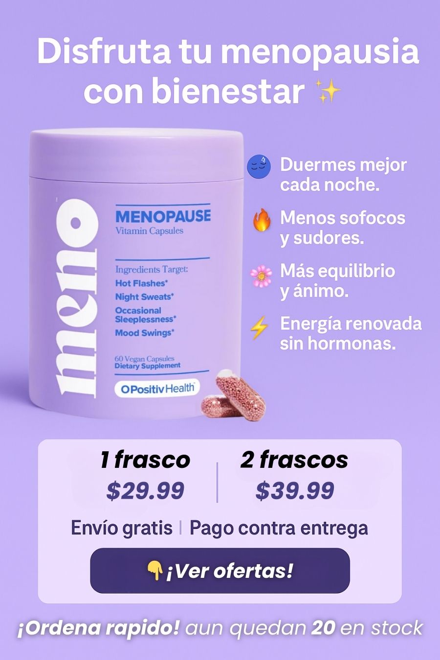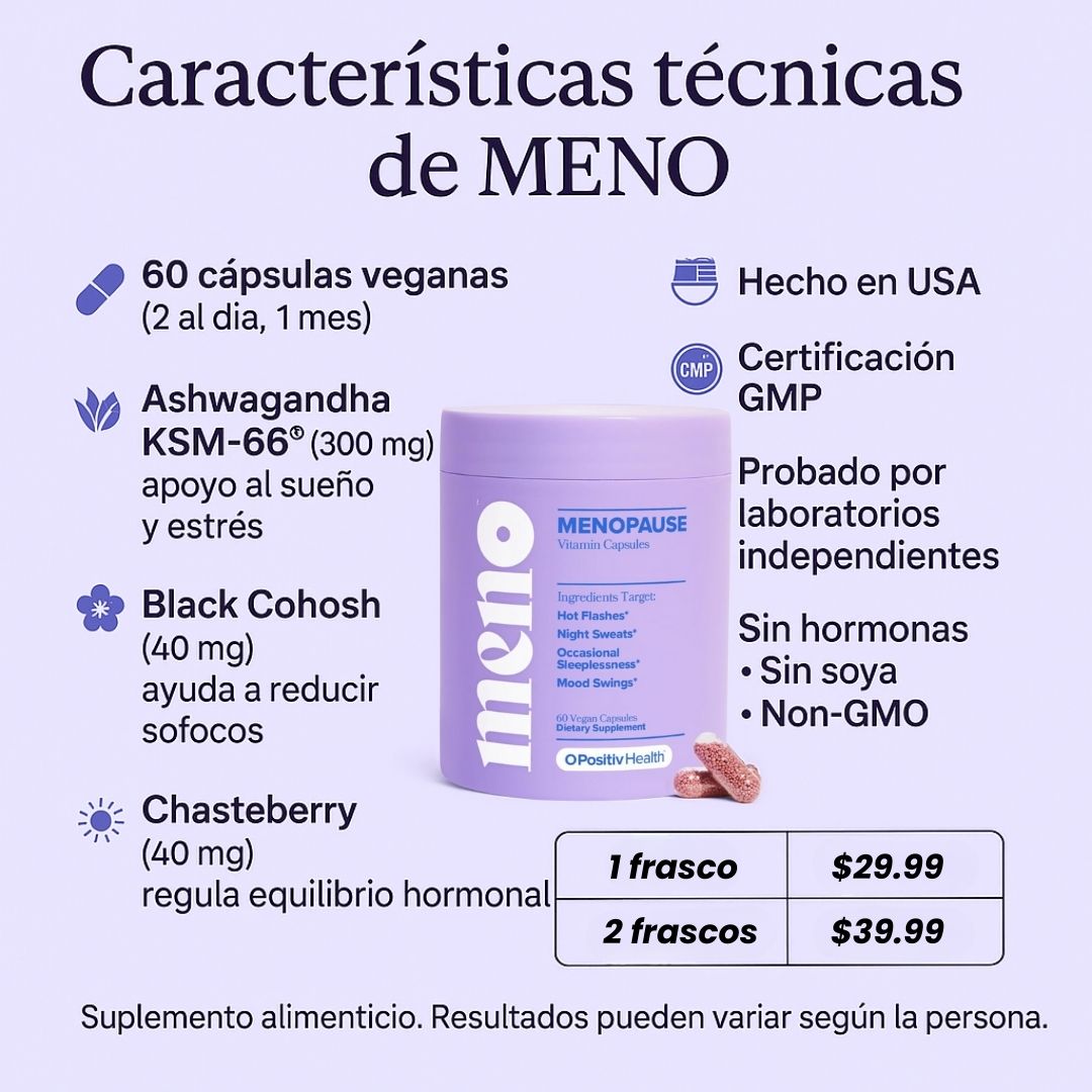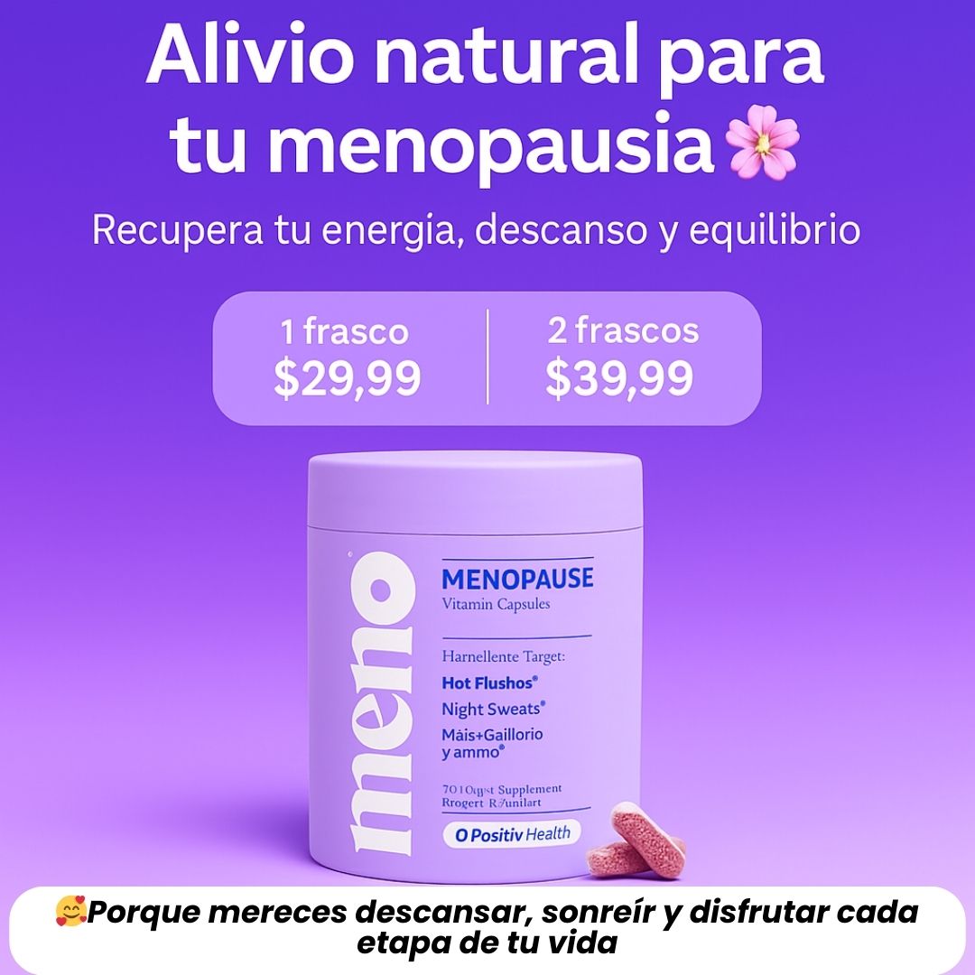 MENOPAUSE es un suplemento que está formulado principalmente para ayudar a aliviar síntomas comunes de la menopausia como sofocos, sudores nocturnos, insomnio ocasional y cambios de humor. 🌸