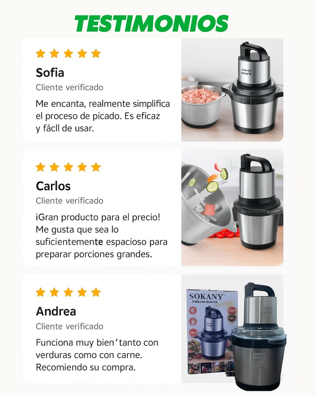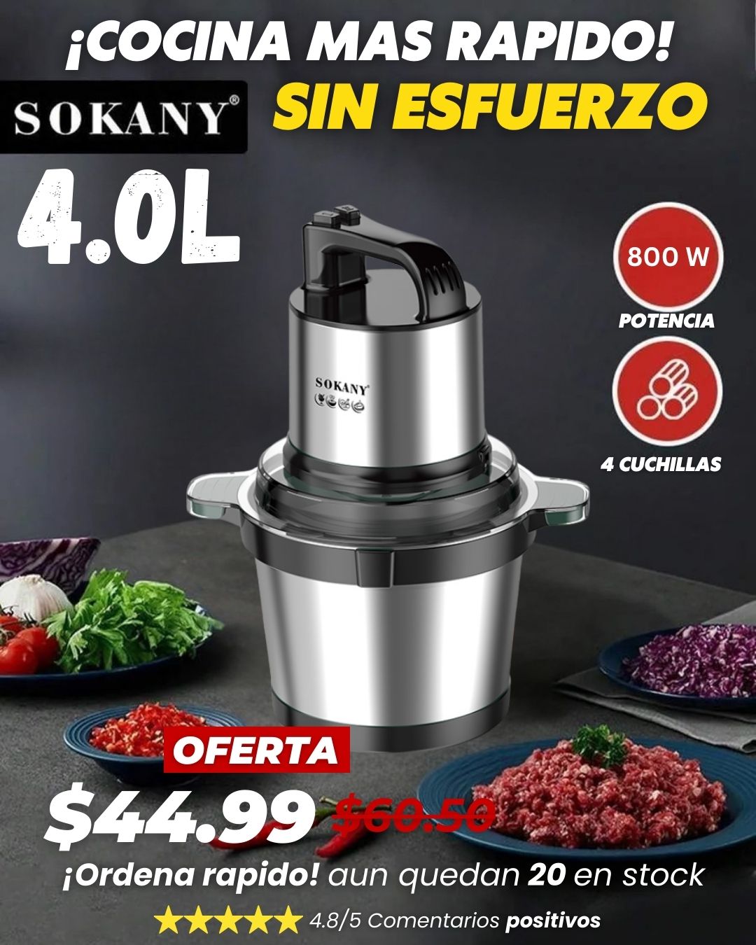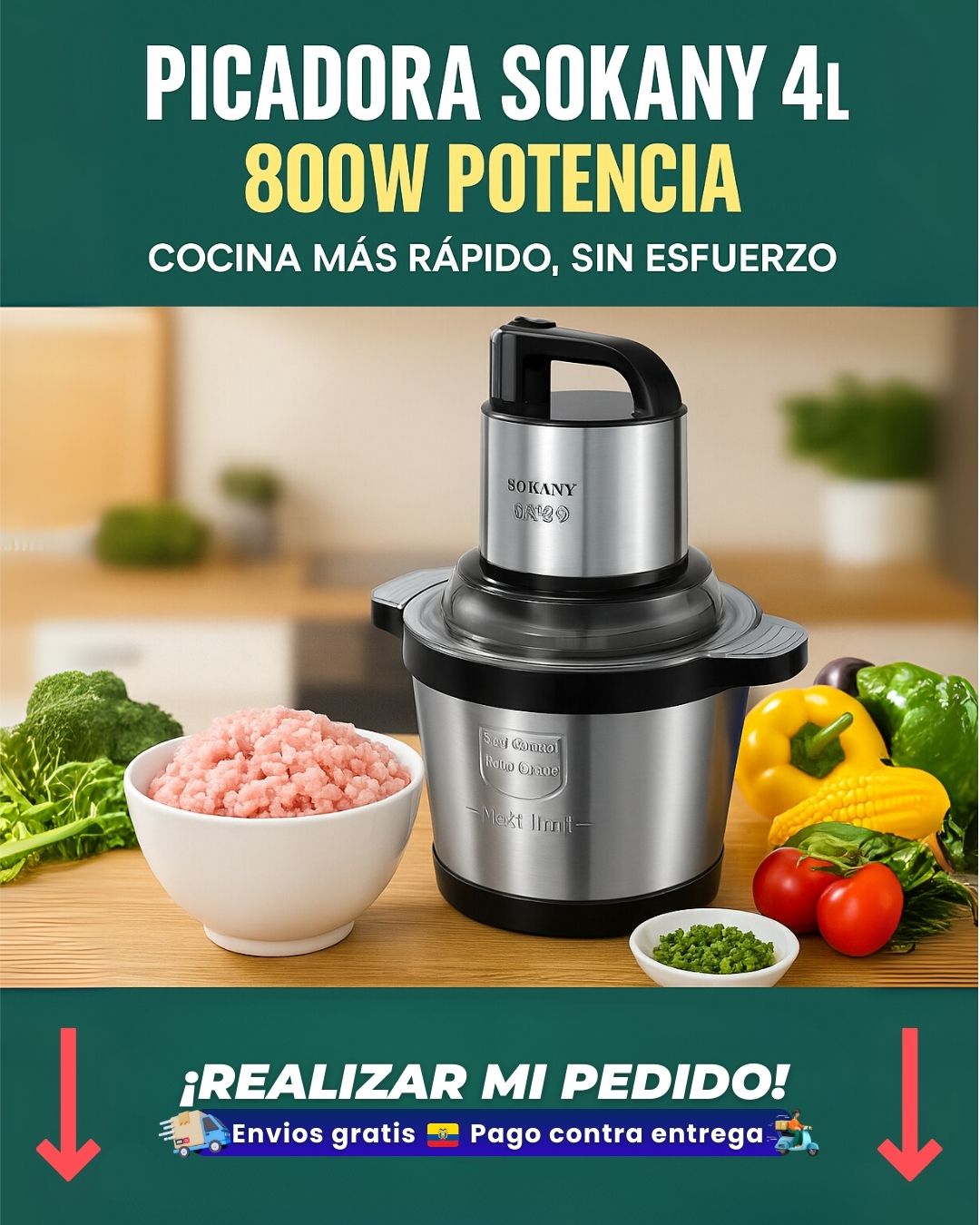 - 1️⃣ Picadora eléctrica Sokany 4L – 800W