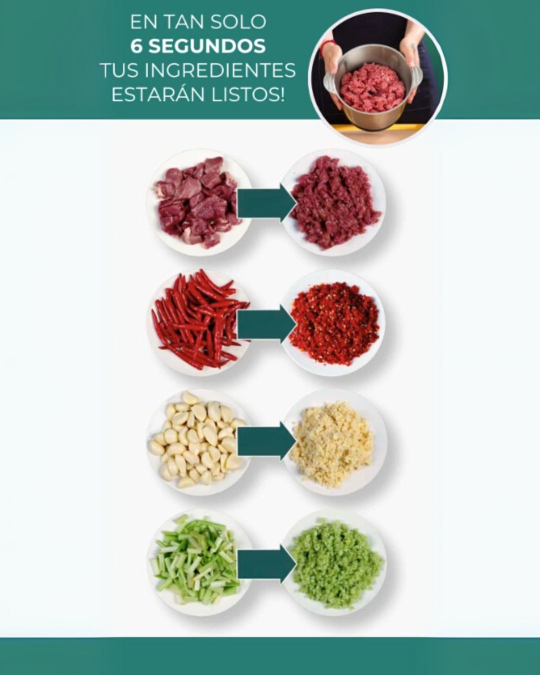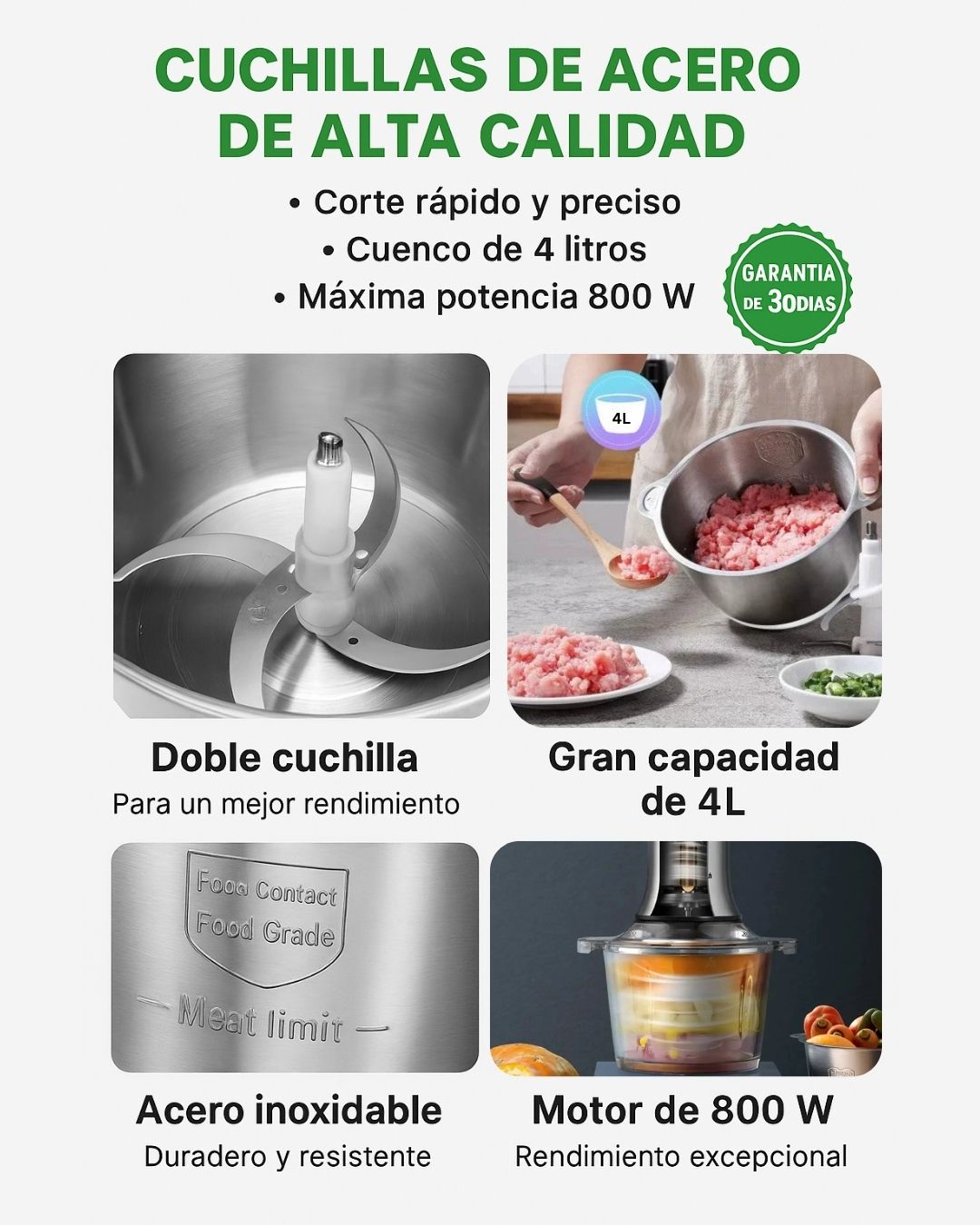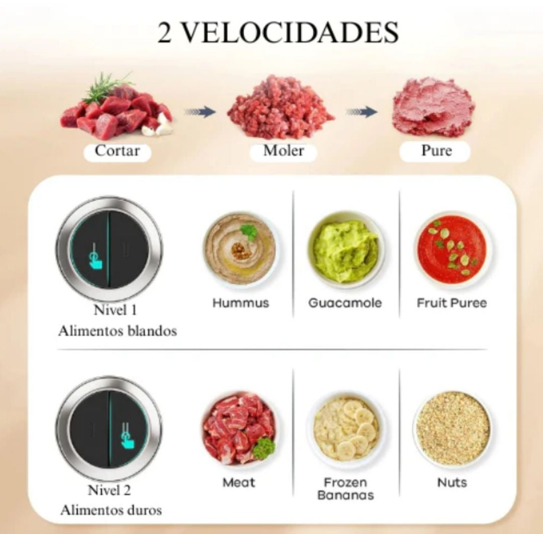 Sí, cuenta con un motor de 800W de alta potencia que tritura carne, nueces y vegetales en segundos.